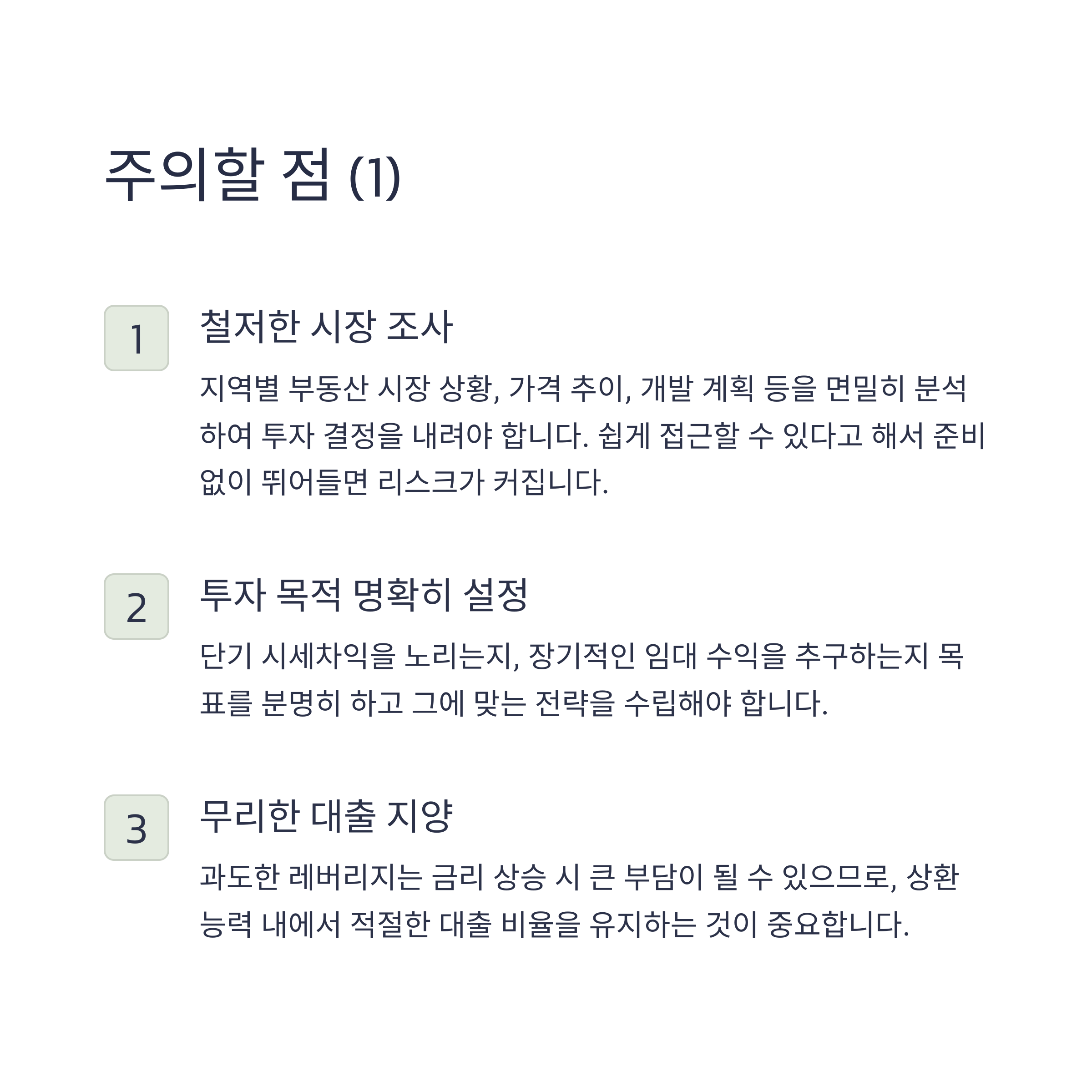 갭투자는 레버리지를 극대화할 수 있지만, 반대로 하락장에서는 심각한 손실로 이어질 수 있습니다.