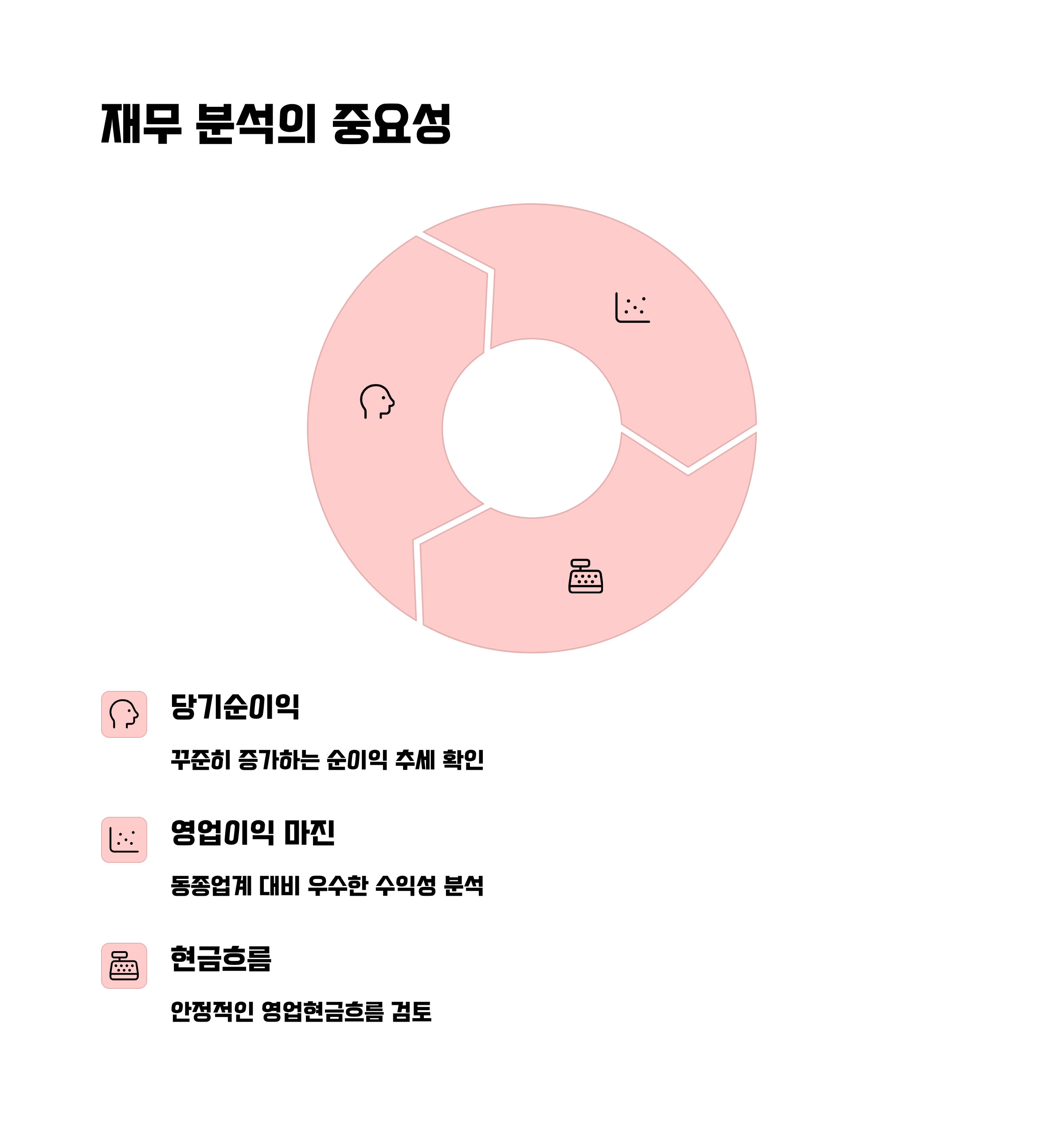재무 분석을 통해 기업의 성장 가능성, 부채 부담, 수익성 등을 파악할 수 있습니다. 이러한 정보를 바탕으로 안전하고 효율적인 투자를 할 수 있습니다.